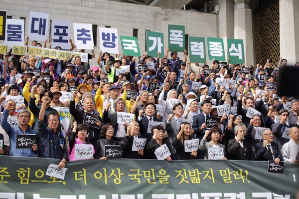 한편 오늘(29일) `고 백남기 농민 사망 국가 폭력 규탄 시국 선언` 참여자들이 서울 세종문화회관에 모여 김두관ㆍ박주민ㆍ박지원ㆍ심상정 등 국회의원 114명과 4대 종단 종교계 인사 500여 명, `민주사회를 위한 변호사모임` 등 법조계 인사 350여 명 등 모두 3000여 명이 연명한 시국 선언을 발표했다.