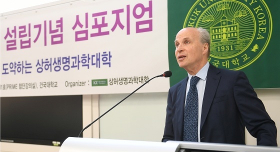 건국대 초빙 석학교수이자 2006년 노벨 화학상 수상자인 로저 콘버그(70) 미국 스탠퍼드대 교수가 12일 건국대학교 생명과학관 프라임(PRIME) 첨단강의실에서 ‘4차 산업혁명 시대 바이오 연구의 선도적 역할과 미래’(Prospective roles and future of BIO in the 4th Industrial Revolution)를 주제로 특강을 펼쳤다.