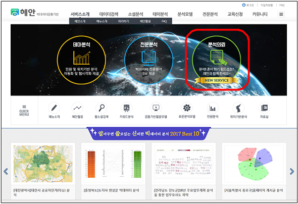 [아유경제=정진영 기자] 앞으로 정부 빅데이터 공통기반 시스템인 `혜안(慧眼)`에 상시로 분석의뢰 가능한 창구가 마련돼 부처와 지자체의 빅데이터 분석이 쉬워질 전망이다.